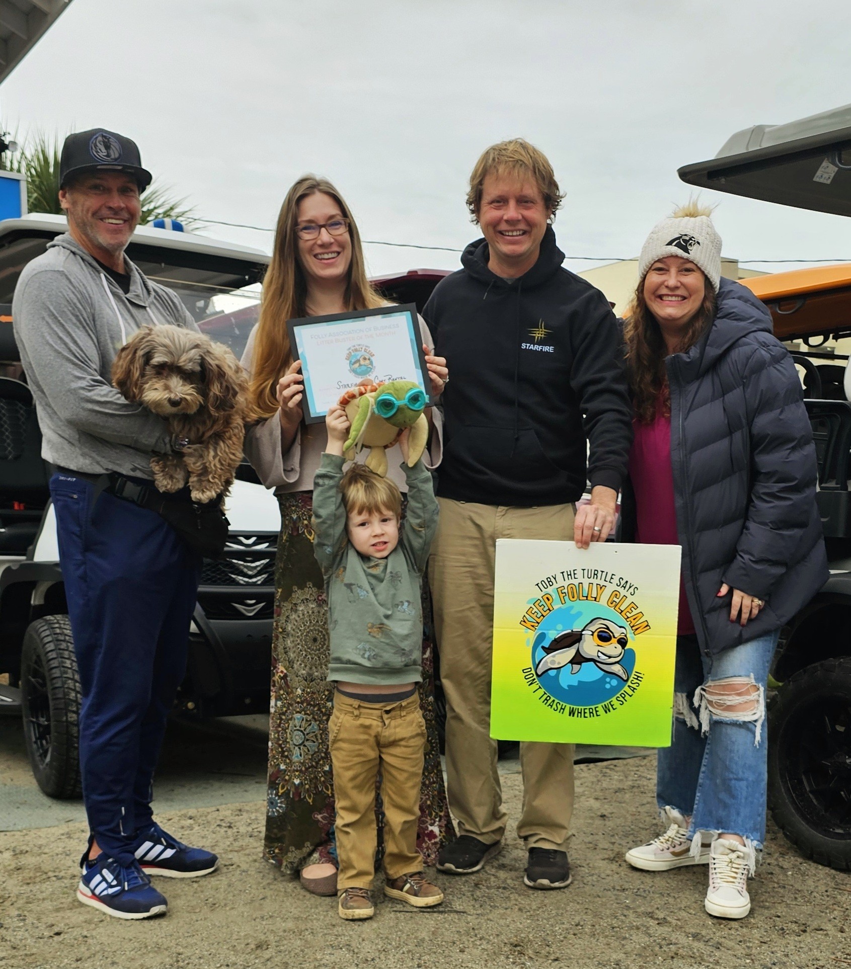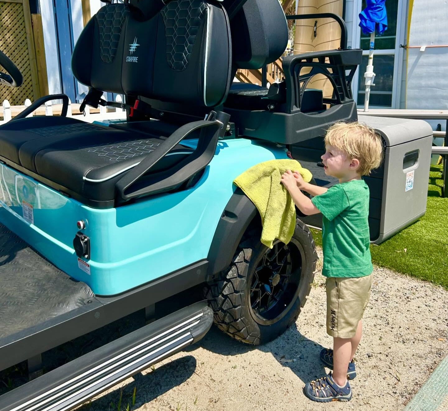 With over 30 years of combined roots on Folly between us, we built Starfire to reflect everything we love about this place: the ease, the charm, and the freedom to ride slow and soak it all in. Our carts are designed right here on Folly and assembled locally in Charleston, SC. As part of our mission to keep community at the center of what we do, we work closely with local homeowners and vacation rental companies to make sure our impact on the island is positive.